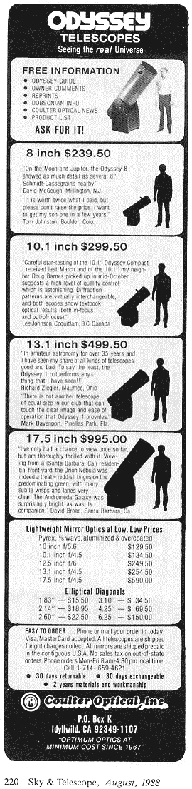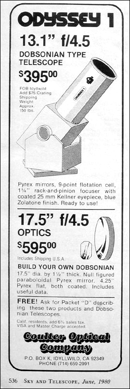 I first saw Coulter ads for parabolic mirrors in Sky & Telescope in maybe 1968. The specs and prices were very aggressive. I didn't buy any though.